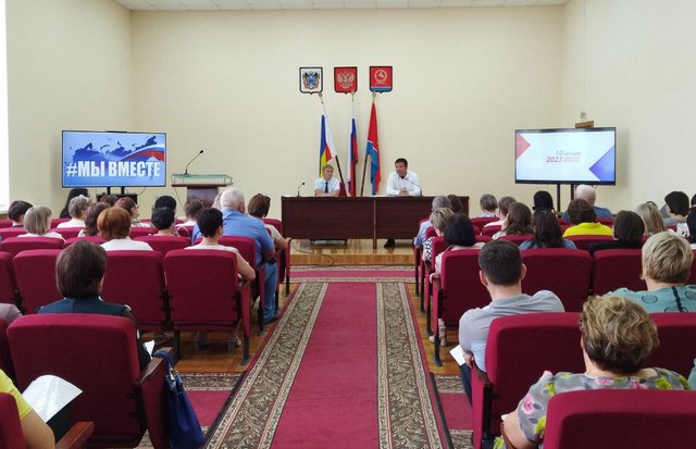 06 сентября 2023 года в рамках подготовки к Единому дню голосования 10 сентября 2023 года в актовом зале Администрации Орловского района состоялось итоговое совещание под руководством главы Администрации района Ю.В. Харенков. В работе совещания приняли участие главы администраций сельских поселений, представители служб жизнеобеспечений района, прокурор Орловского района и сотрудники ОМВД,